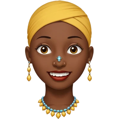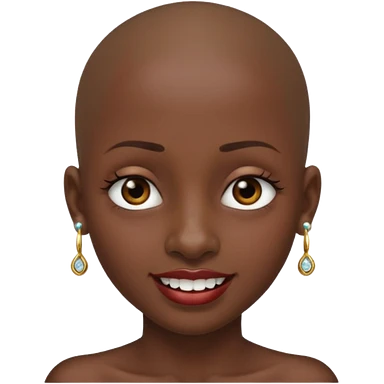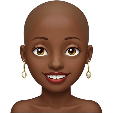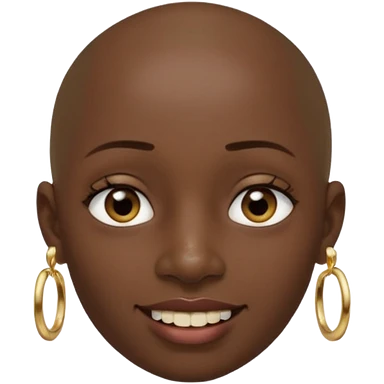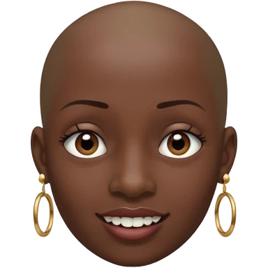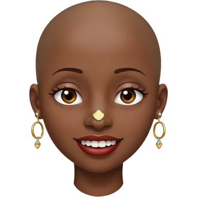 Make a emoji of a person with dark skin and has a nose ring and has a bunch of small earrings and a big earring and who has a gap between her two front teeth and with no hair emoji