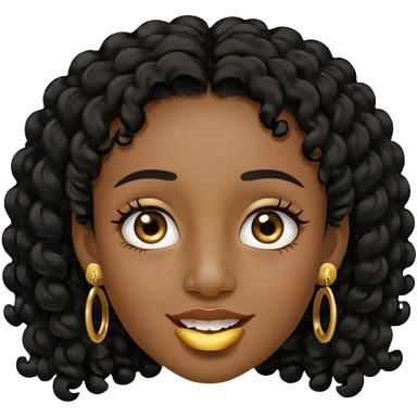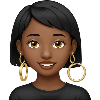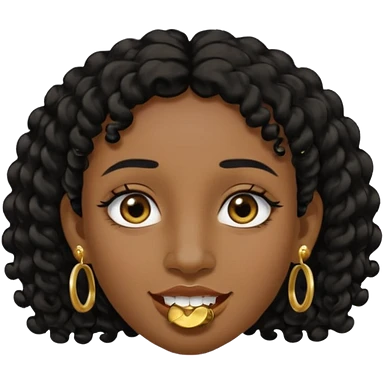 Make a emoji of a person with dark skin and has a nose ring and has a bunch of small earrings and a big earring and who has a tiny bit of hair and who has a gap between her two front teeth emoji