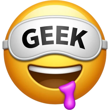 Give me a regular emoji with a sleeping mask that says "GEEK" and add neon purple lots of drool to the corner of his half opened mouth emoji