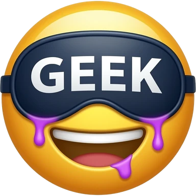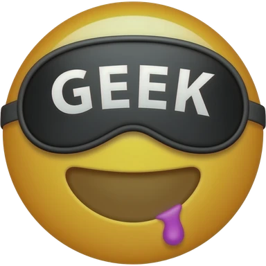 Give me a regular emoji with a black sleeping mask that says "GEEK" and add neon purple lots of drool to the corner of his half opened mouth emoji | AI Emoji Generator