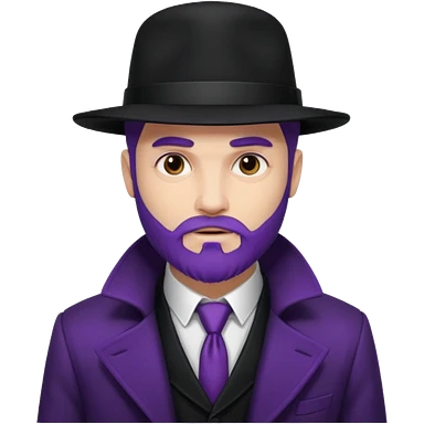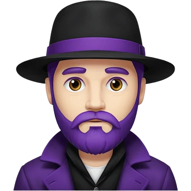 Give me png of a character having bold masculine beard and hairs with white skin which should look similar to a gangster, the colour tone should be purple, long hairs and long beard emoji | AI Emoji Generator