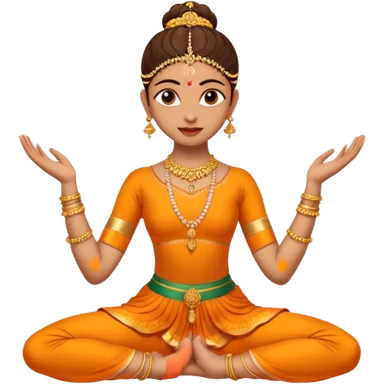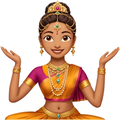 give me some bharatanatyam dancer emojis with some light brown skin and have 1 hand up and 1 hand down emoji
