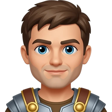 A gladiator in light armor and a helmet, extending a scroll as if offering a gift, with a friendly and relaxed smile. emoji
