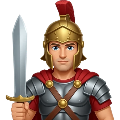 A gladiator with a helmet and armor, but in a cute twist, forming a heart with his hands. Represents strength with a hint of affection. emoji