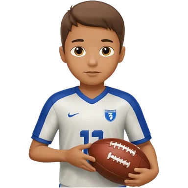 a boy having a football ball next to his hand wearing a football jersey emoji