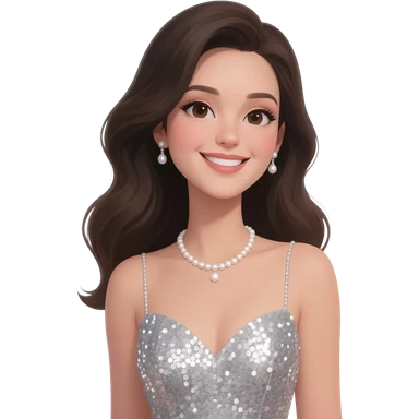 Glam girl under a soft spotlight posing with a shiny stylish dress, confident smile — picks the boldest deal emoji