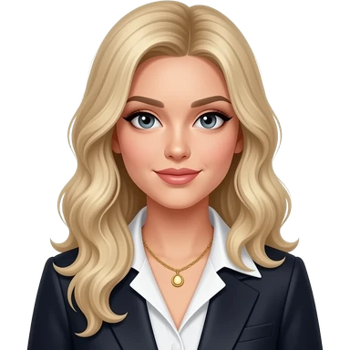 * Character: A stylish lady,brown hair * Clothing: A luxurious white fur coat * Accessories: A dazzling diamond necklace * Expression: Confident, elegant, maybe slightly glamorous * Pose: Head slightly tilted or a poised posture * Style: Emoji-like, simple but expressive emoji