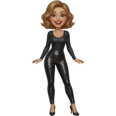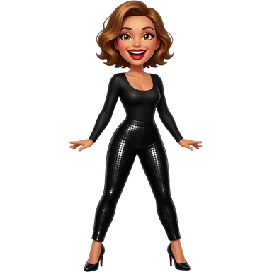 glamours,-tanned,-very-beautiful-woman-with-big-plump-red-lips,-long-long-lashes,-honey-silky-very short- hair,-wavy-hair,-hazel-eyes- wearing-black-Long-sleeved-bodysuit-and-black-sequinned-pants-black-black stilettos-and-laughing-out-loud-full body emoji