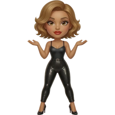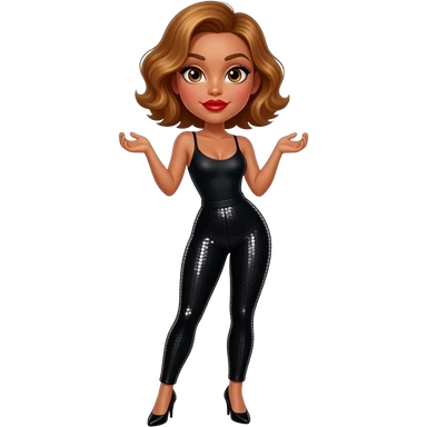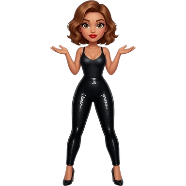 glamours,-tanned,-very-beautiful-woman-with-big-plump-red-lips,-long-long-lashes,-honey-silky-very short- hair,-wavy-hair,-hazel-eyes- wearing-black-bodysuit-and-black-sequinned-pants-black-stilettos-and arms-shrugging- emoji