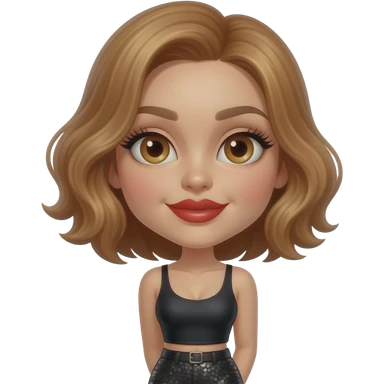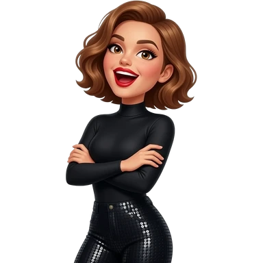 glamours,-tanned,-very-beautiful-woman-with-big-plump-red-lips,-long-long-lashes,-honey-silky-very short- hair,-wavy-hair,-hazel-eyes- wearing-black-Long-sleeved-bodysuit-and-black-sequinned-pants-black-and-laughing-out-loud-with tears-waist-up emoji | AI Emoji Generator