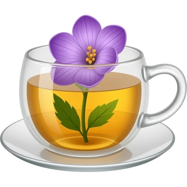 Glass cup of tea with a purple flower in it emoji