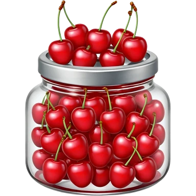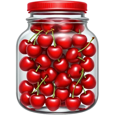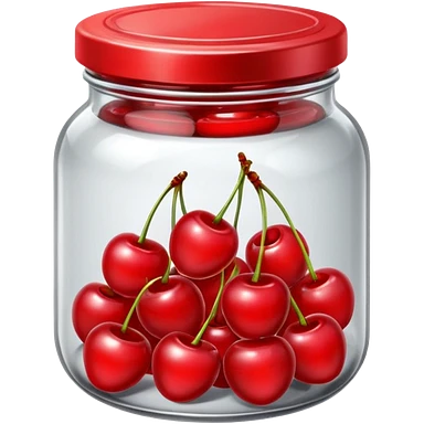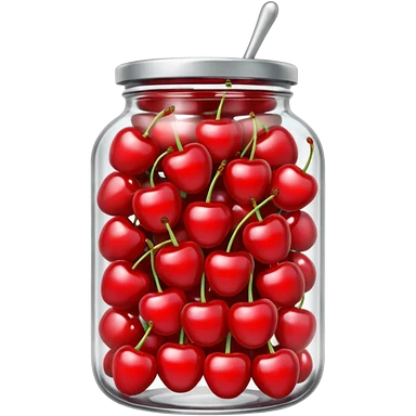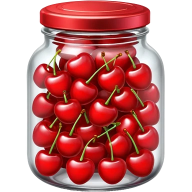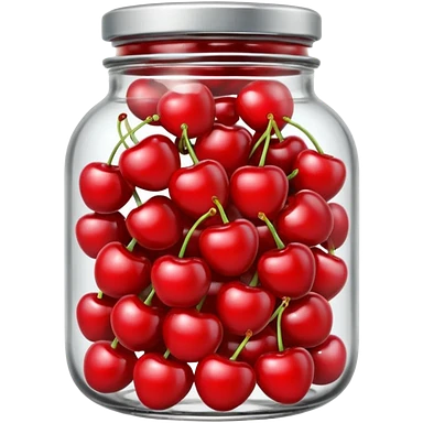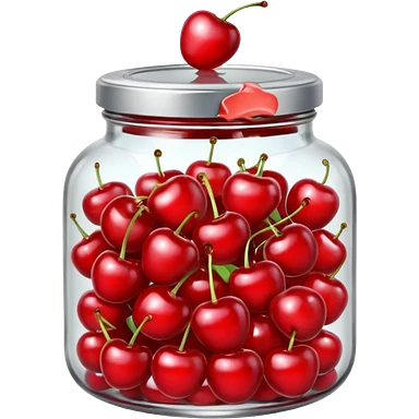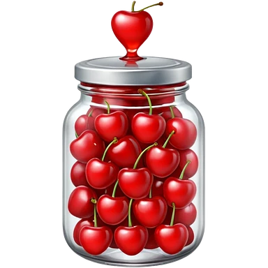 Realistic glass jar with silver metallic lid filled with maraschino cherries inside of it. emoji