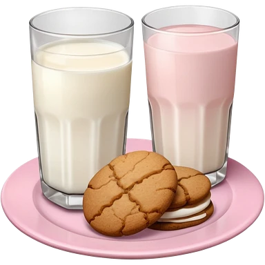 glass of milk, ginger cookies on a pink plate emoji | AI Emoji Generator