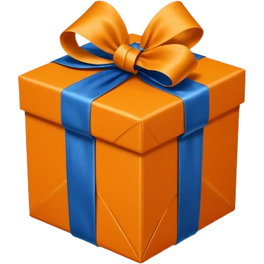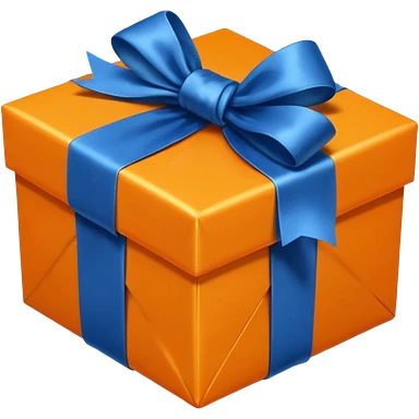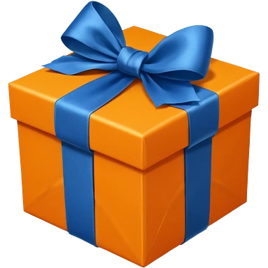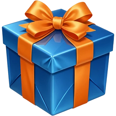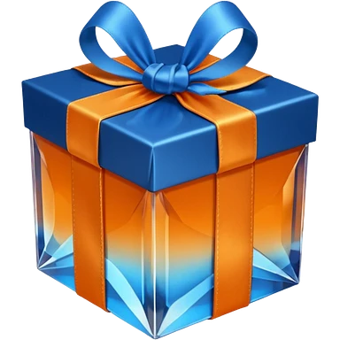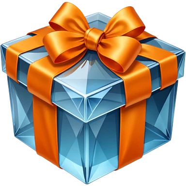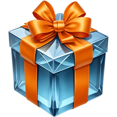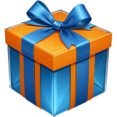 glass orange gift box with blue ribbon emoji | AI Emoji Generator