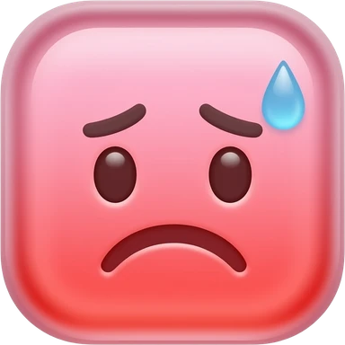 Glassmorphic frosted glass icon, rose pink and crimson (#E11D48) color scheme, soft glow, transparent background, minimal 3D design, clean edges, app icon style, stressed anxious face with sweat drop on forehead, tense worried expression emoji