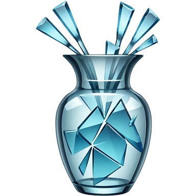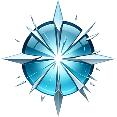 A broken glass design created in the style of an Apple iOS emoji. The shattered glass should be scattered in a realistic but minimalistic way, as if lying on an invisible, transparent surface. The shards should remain within the visual bounds of a typical emoji, with sharp, clean edges, subtle reflections, and varying fragment sizes. Use soft gradients, no outlines, and rounded corners where appropriate to match the iOS aesthetic. The overall illustration should feature a soft 3D appearance with delicate shadows and glass-like texture. Transparent background. High resolution. PNG format. emoji