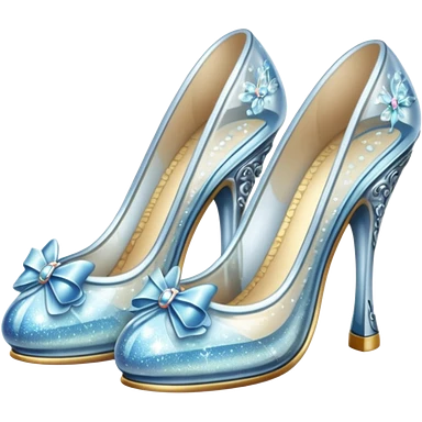 Cinderella Blue Glass slippers with glitters and crystals and cute little gliitery glass bow emoji