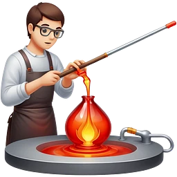 Glassblowing icon, molten glass being shaped with blowpipe, glowing glass object in process, glass being poured into mold, unfinished piece, minimalistic style, clean lines, transparent background. emoji | AI Emoji Generator