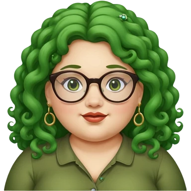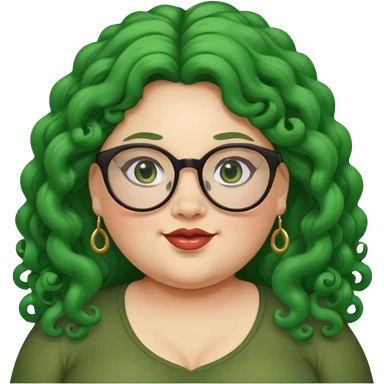 glassess and green curly long haired fat girl earrings emoji