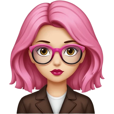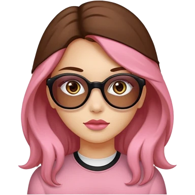 Una ragazza con capelli castani mossi e indossi occhiali neri e con una piccola rosa nella testa emoji