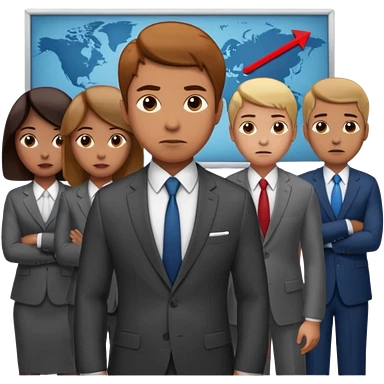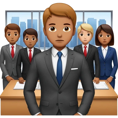 Create a realistic emoji of a person making some decisions in front of a grounp while standing in a office emoji