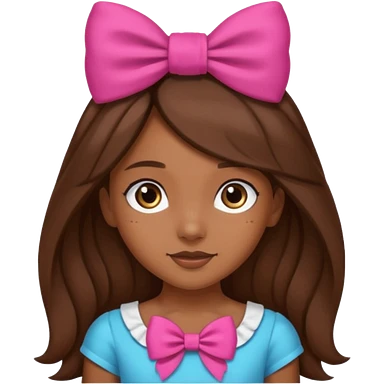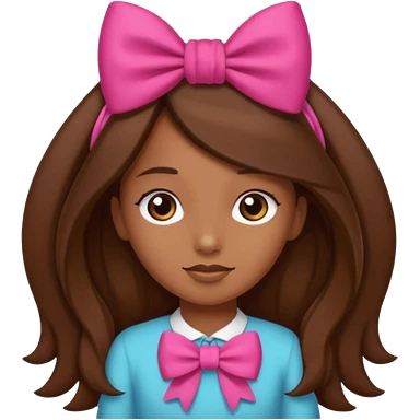 Chica morena, pelo largo castaño y un lazo en la cabeza emoji