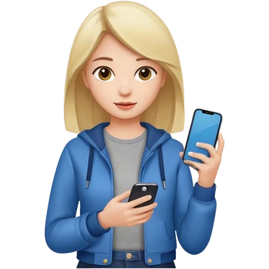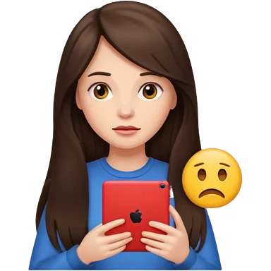 bored brunette with long hair holding iPad emoji emoji