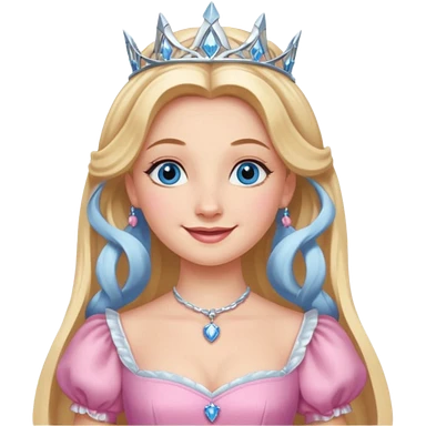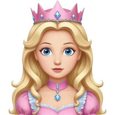 Glinda from the Wizard of Oz with blue eyes, blonde long hair, pink outfit emoji