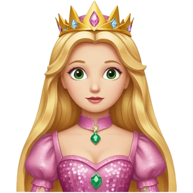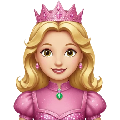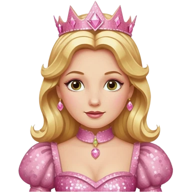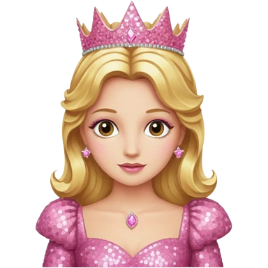 Glinda from The Wizard of Oz with long golden blonde hair, pink sequin outfit emoji | AI Emoji Generator