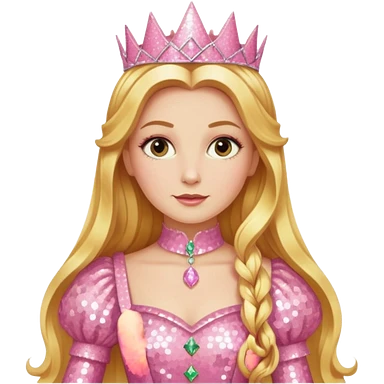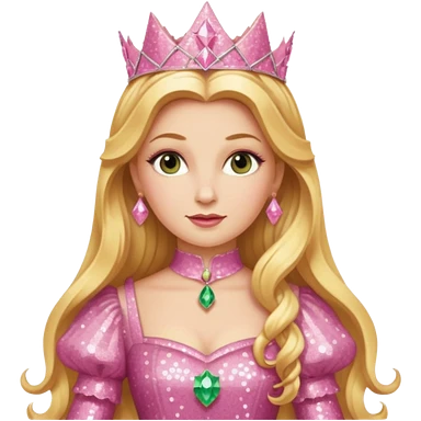Glinda from The Wizard of Oz with long golden blonde hair, pink sequin outfit emoji