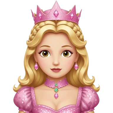 Glinda from the Wizard of Oz with golden blonde hair, pink sequin outfit emoji