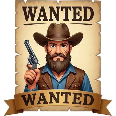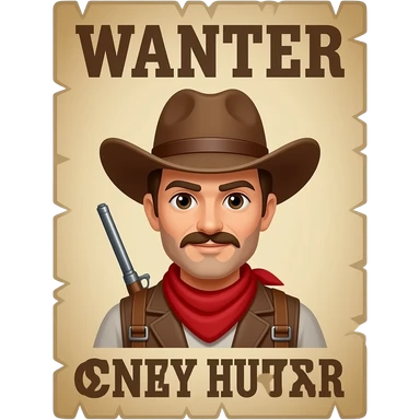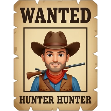Wanted Cowboy hunter Poster, no gun, only one text "WANTED" emoji