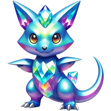 Glitter-dusted Crystaline Light-refracting Prismatic Pokémon-Fakémon-Digimon-Creature, (full body) emoji