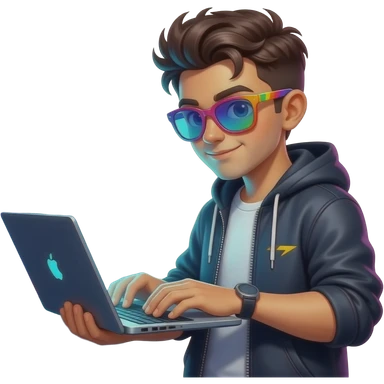 Secret agent with a spyglass reviewing multicolor lines of code emoji