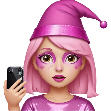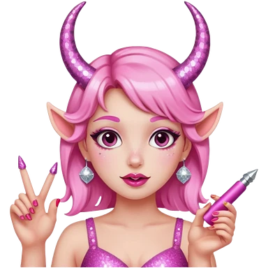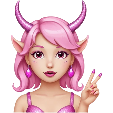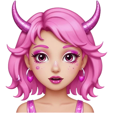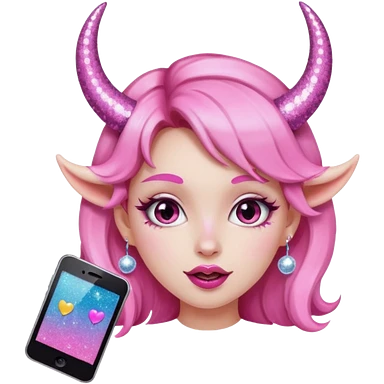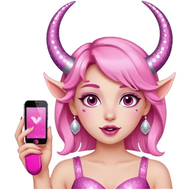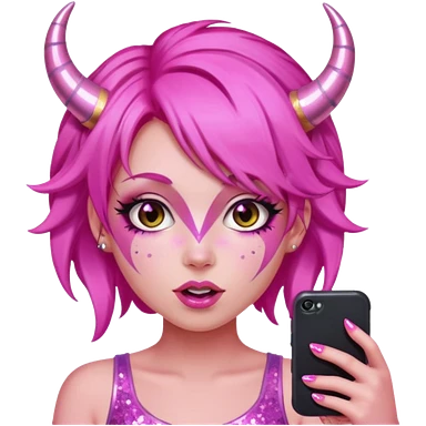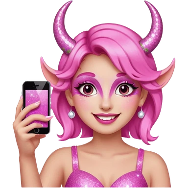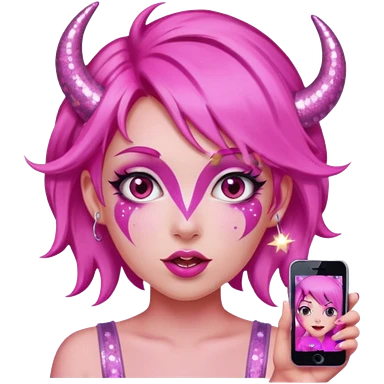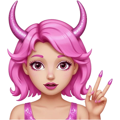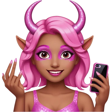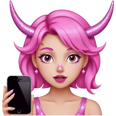 glitter pink girl naughty selfie glitter pink horns emoji | AI Emoji Generator