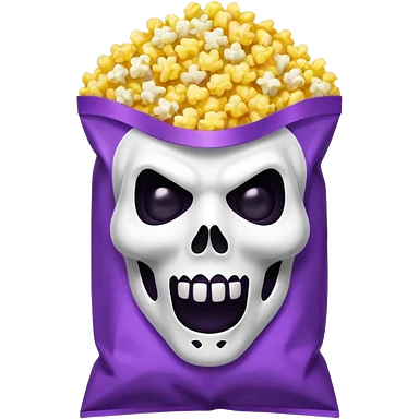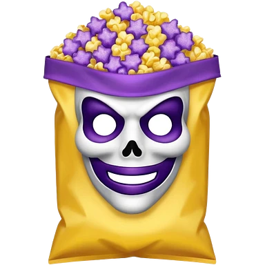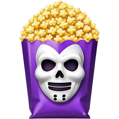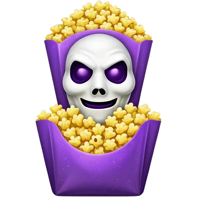 Glitter purple and yellow popcorn with ghostface mask in packaging emoji