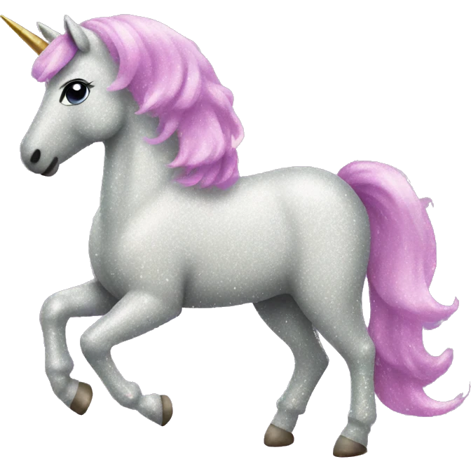 pink glitter unicorn emoji with rainbow mane and rainbow horn emoji