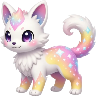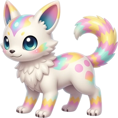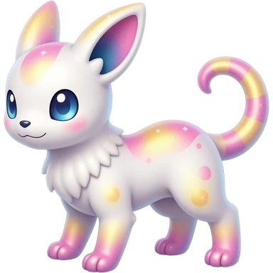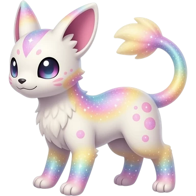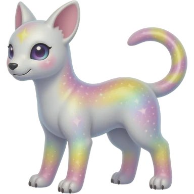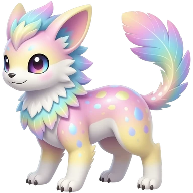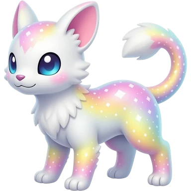 Rare realistic exotic pastel whitish pinkish yellowish gradients shiny sparkly divine celestial spiritual iridescent cute epic pretty beautiful handsome gorgeous aesthetic colorful vibrant Vernid-Trico-species-Fakemon-creature by LiLaiRa, 4 legs, 1 tail, random markings, (full body) emoji