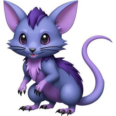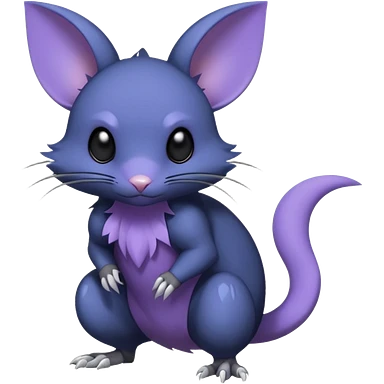 Gothic style, charcoal-black, steel-blue, lilac-violet, Rattata-Noibat-Purrloin-Fakemon-hybrid-creature (full body) emoji
