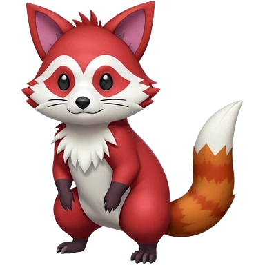 Red, brown, black, white, yellow, Zangoose-Cacomistl-Red-Panda-Rattata-Skitty-Noibat-Purrloin-Fakemon-hybrid-creature (full body) emoji