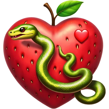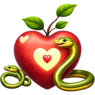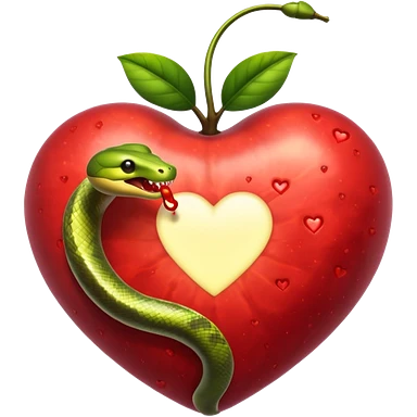 glowing forbidden fruit with snake wrapped heart shape emoji