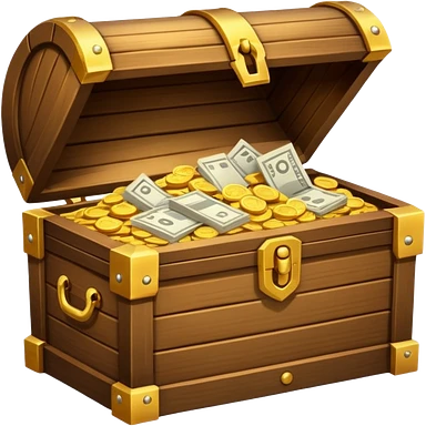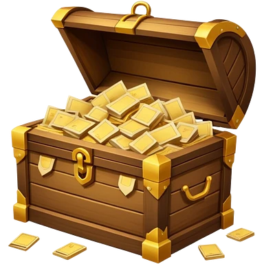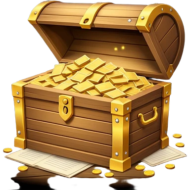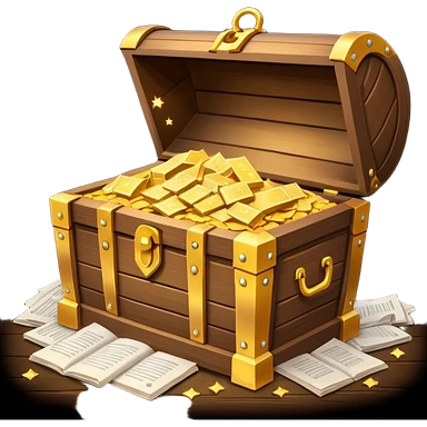 Glowing treasure chest overflowing with paper documents, sparkles, minimal style emoji
