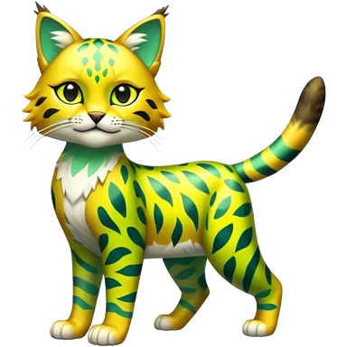 Green and Yellow Electrike-Lucretia-Luxray-Sprigatito-Bobcat-Amaura-Aurorus-Shiny-glorp-cat-fusion (full body) emoji