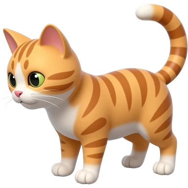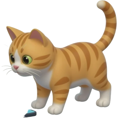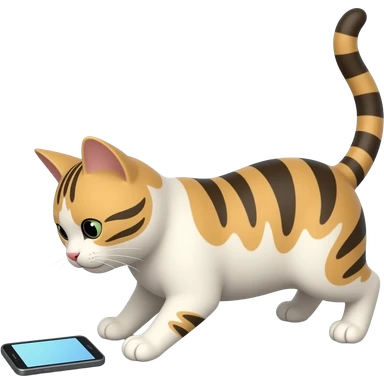 Glossy 3D rendered realistic cat emoji on all fours, detailed fur and features, side profile, looking at a smartphone on the ground in front of it, slightly rounded edges, soft shading, white background emoji | AI Emoji Generator