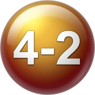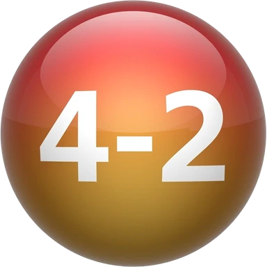 Glossy 3D sphere emoji, "4-2" bold white text centered, gradient from gold to cherry red, glass reflection highlight, bubble style icon emoji