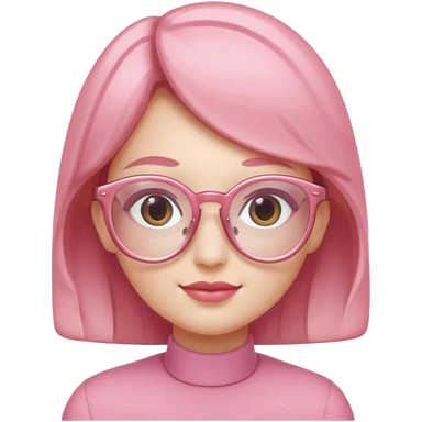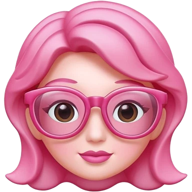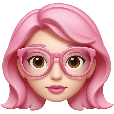 A 3D cartoon rose-pink spectacle with glossy curved frames and soft reflections, feminine Memoji-style rendering. emoji