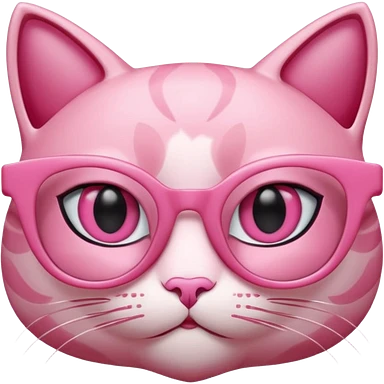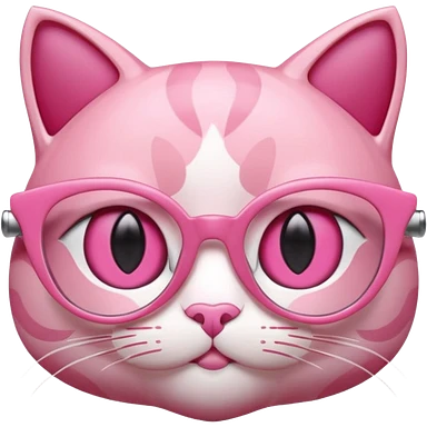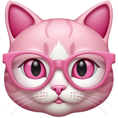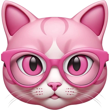 A 3D cartoon rose-pink cat-eye spectacle with glossy curved frames and soft reflections, feminine Memoji-style rendering. emoji