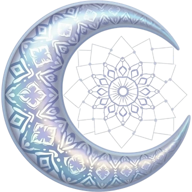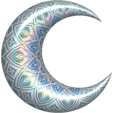 glossy iridescent crescent Mandala damask moon emoji
