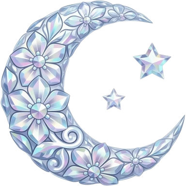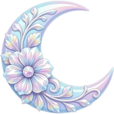 glossy Pastel iridescent floral shiny crystal crescent damask moon emoji