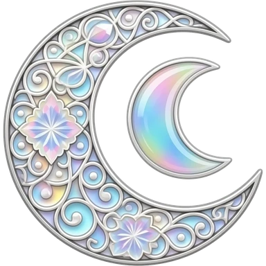 glossy Pastel iridescent crystal crescent damask moon emoji